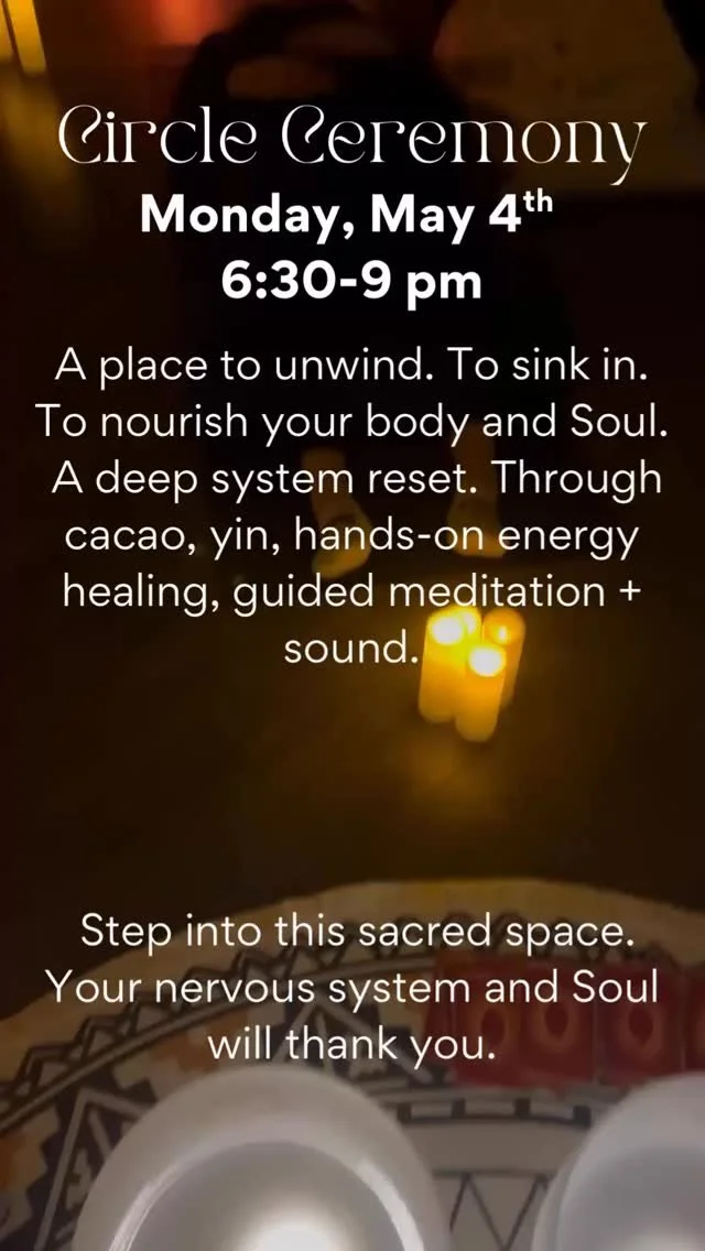 Held privately for up to 8 guests (larger groups welcomed with inquiry), this ritual blends guided meditation with crystal bowls, Tibetan bowls played on and around the body, gong, chimes, and intuitive energy work. Every session is a co-created space of deep rest, release, and remembrance — wrapped in the loving frequency we hold as partners, and guided by the resonance of your Soul.